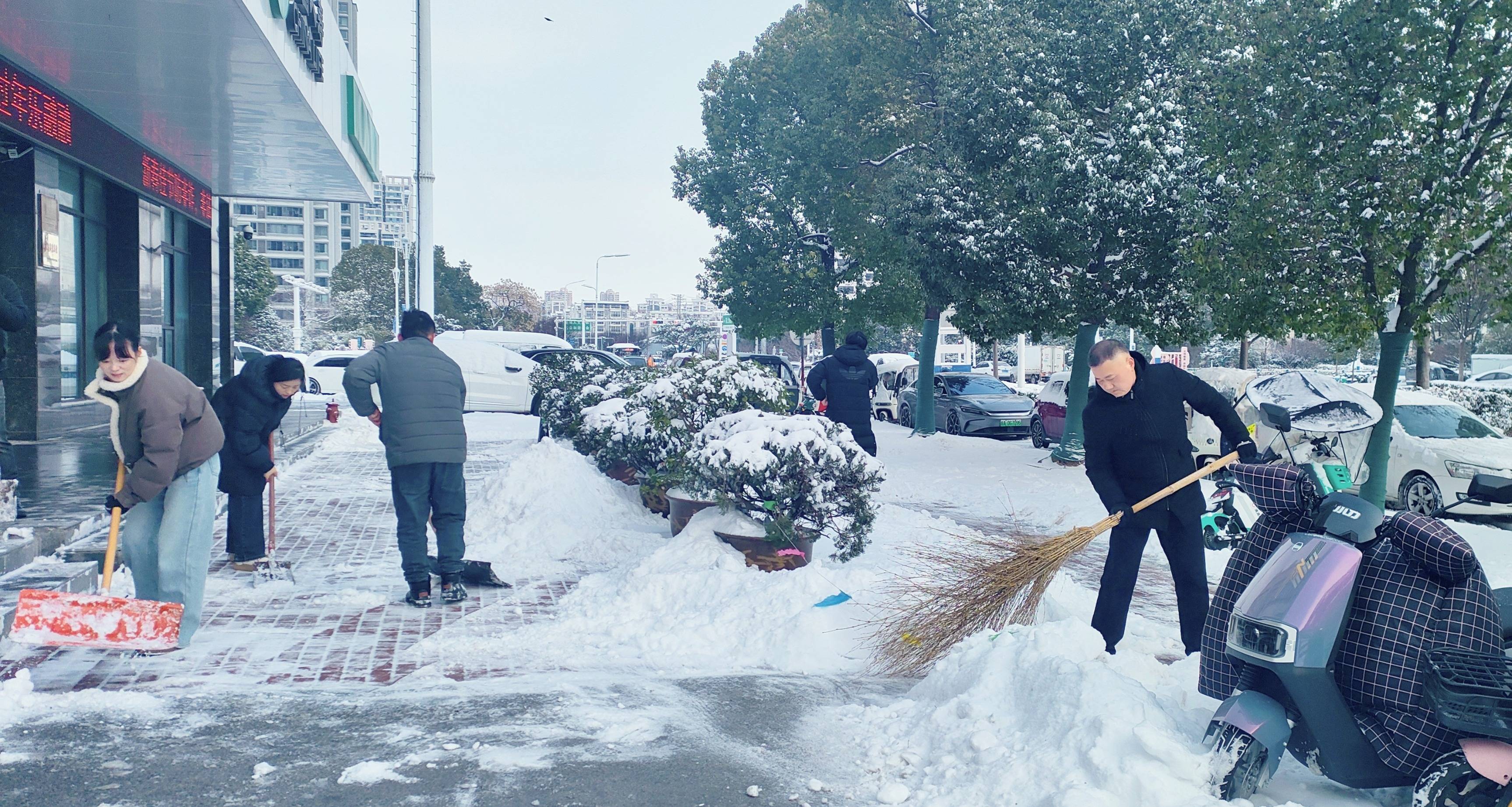 图:工作人员清理营业场所周边的积雪“我们将持续以‘我为群众办实事’为导向,密切关注天气变化,健全应急响应机制,以更扎实的举措、更务实的作风,为客户和群众提供更安全、便捷的服务环境。”中国人寿阜阳分公司相关负责人表示。